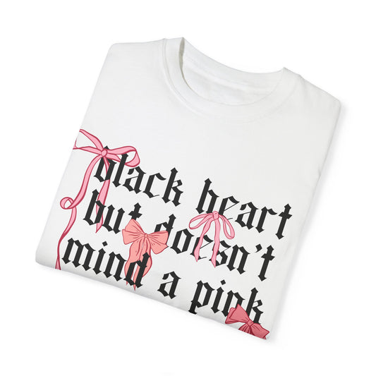 Black Heart, Pink Bow Unisex Comfort Colors Shirt