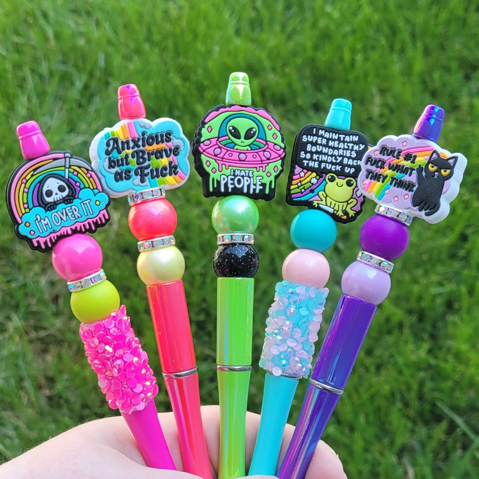 These beaded pens feature a variety of silicone and acrylic beads. Each pen comes with a free ink refill!